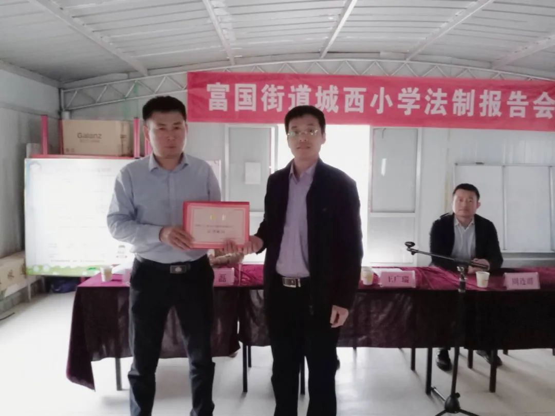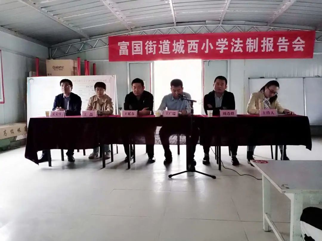 为进一步深化法治教育,提高全体师生的法律意识,推动校园法治教育工作再上一个新台阶,2020年10月29日下午,沾化区富国街道城西小学举办法治教育报告会,富国街道办事处副主任王延春、富国司法所所长周连群、沾友律师事务所律师王广瑞参加报告会。