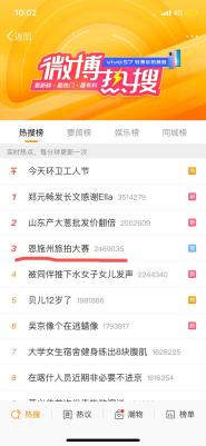 “恩施州旅拍嘉年华”开启后,得到了微博平台和多地文旅部门的大力支持。活动海报霸屏微博开机画面,主话题#恩施州旅拍大赛#阅读量已突破1000万,并登上微博热搜榜第三位。活动种子微博发布后,得到了全国二十多个城市的旅游官博的转发支持,湖北省文旅厅、武汉市文旅局、重庆市文旅局和杭州市文旅局等恩施州主要旅游客源地所在的文旅部门官博也积极转发,并热情邀请本地网友参与。种子微博转评赞总数接近400,阅读量超过300万。