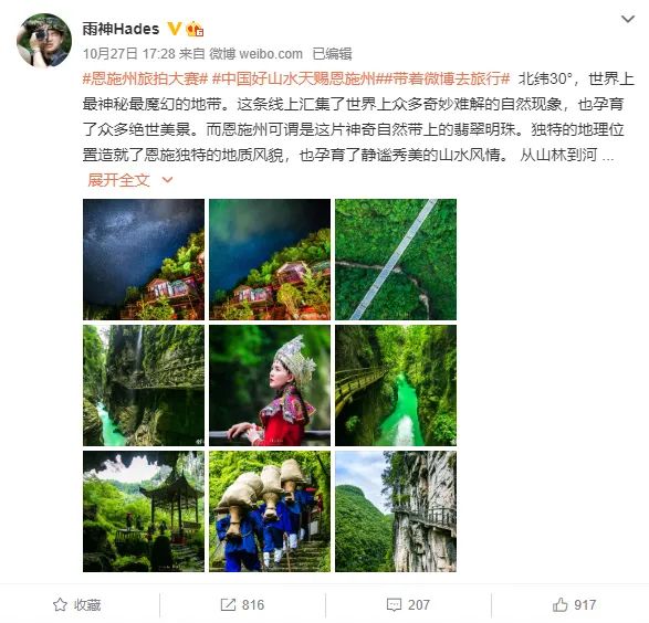 2020恩施州旅拍大赛火热开启 千万粉丝微博大V晒照引爆热搜