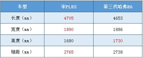 另外,更宽敞的车内空间也是消费者看中SUV的必要条件,从两款车身的对比参数上可以看出,第三代哈弗H6相比宋PLUS仅在车高上略胜一筹,而宋PLUS在车身尺寸的数据上比第三代哈弗H6要大一圈,已经达到B级SUV标准,优势明显。