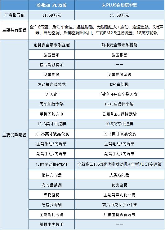 科技配置比拼,宋PLUS普及率高,第三代哈弗H6有亮点