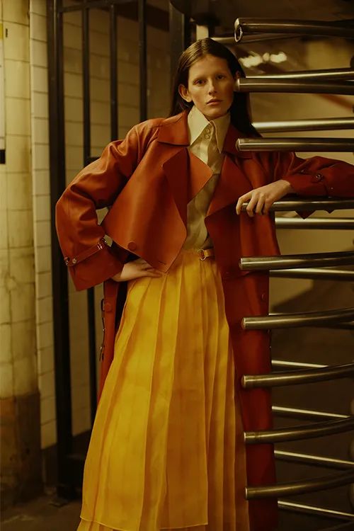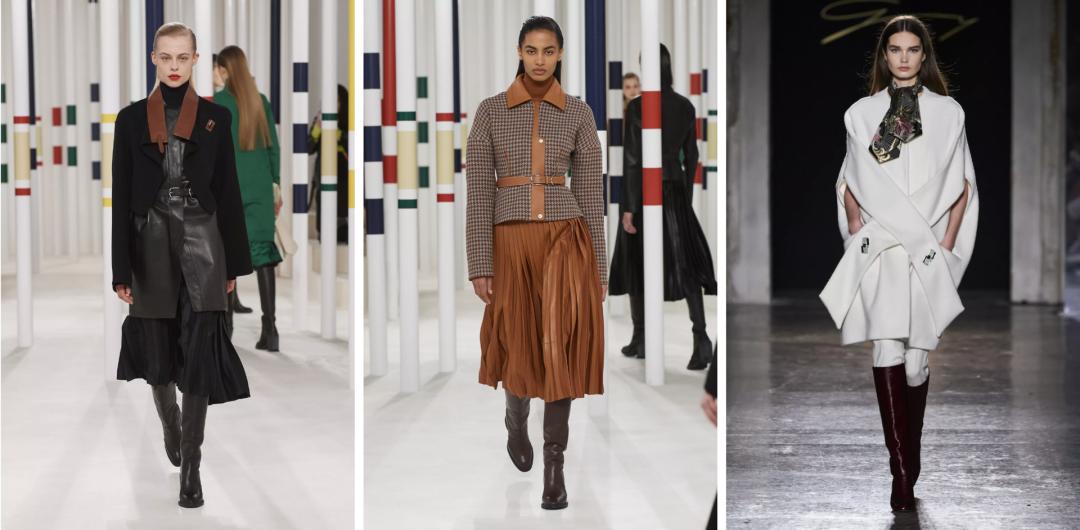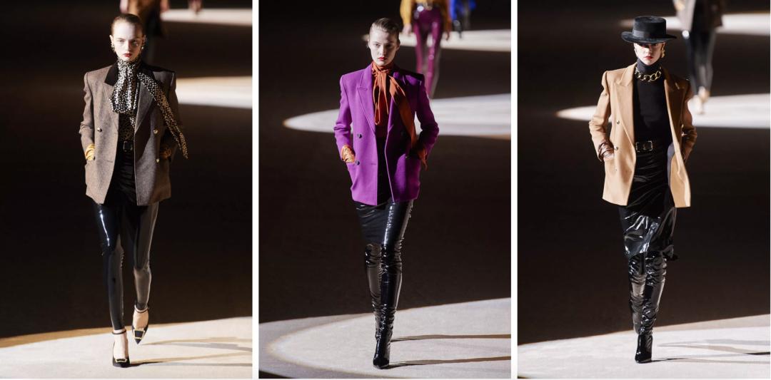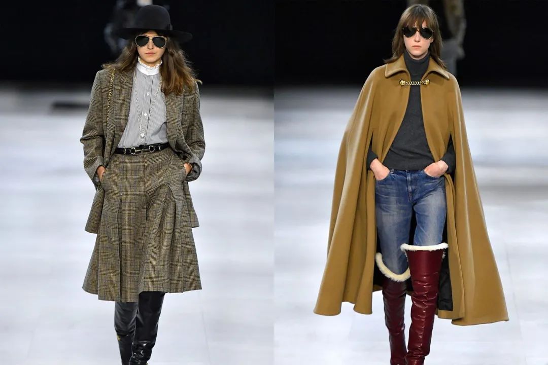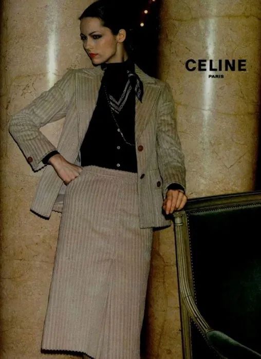 对这股潮流的复古还要从2019年Céline的秋冬时装秀上说起,在那场大秀上,模特穿着过膝长裙或是长裤,西装外套戴佩衬衫,腿上是过膝长靴,再加上飞行员墨镜,全身低调的大地色系,但又不失贵气,整个人干净利落、清爽帅气。
