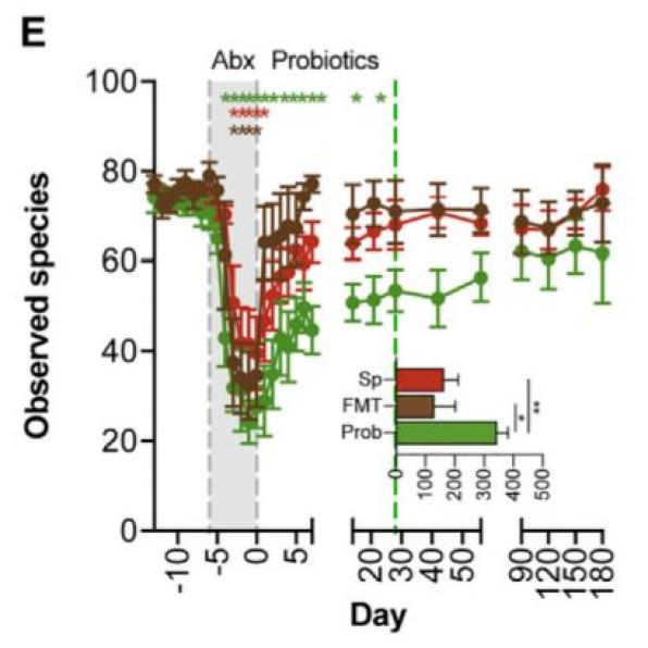 补充益生菌并没有想象的那样有助于肠道菌重建,反而延长了肠道微生态的恢复期。2012年发表在《细胞》(Cell)杂志上的一项研究,该研究对21名接受抗生素治疗的患者进行益生菌辅助治疗。