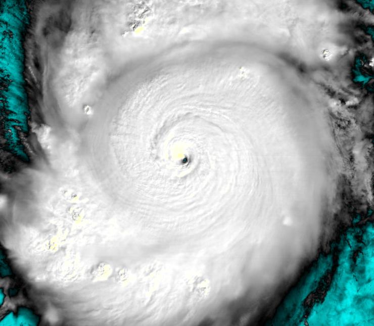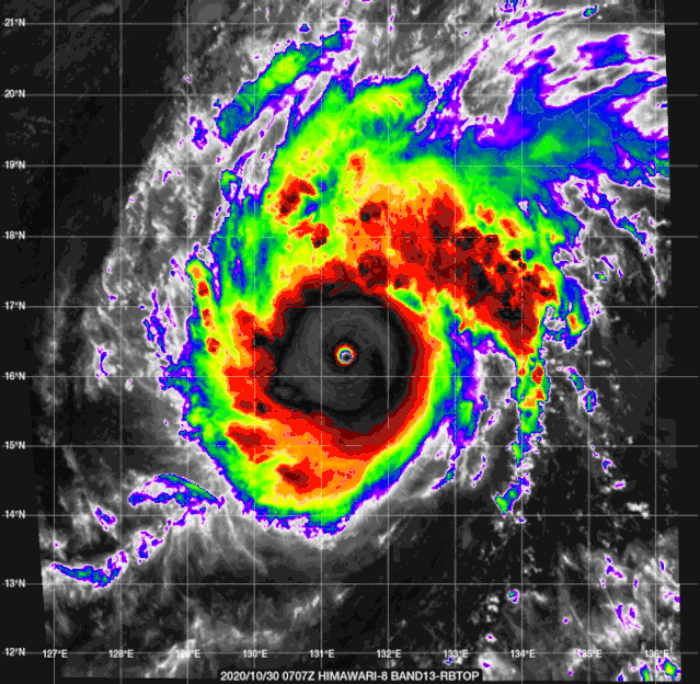 葵花-8号卫星于31日上午09时20分监测到的17级以上超强台风“天鹅”然鹅