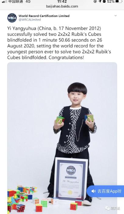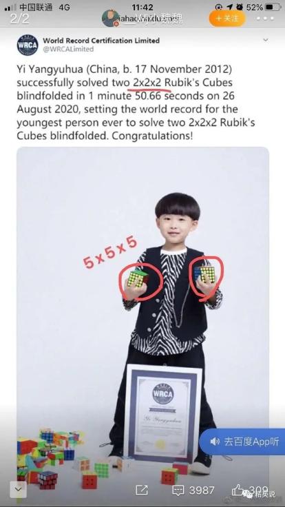 原来,千禧妈妈认证的是“年龄最小”和“最快”,而二阶魔方其实是最简单的那种,和拍照时拿在手里的有出入。