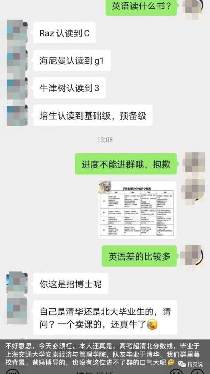 另外,为了实现“正确鸡娃”,家长们使出浑身解数挤进优质家长群,但在一个家长群内,连清华北大的父母也被拒之门外。