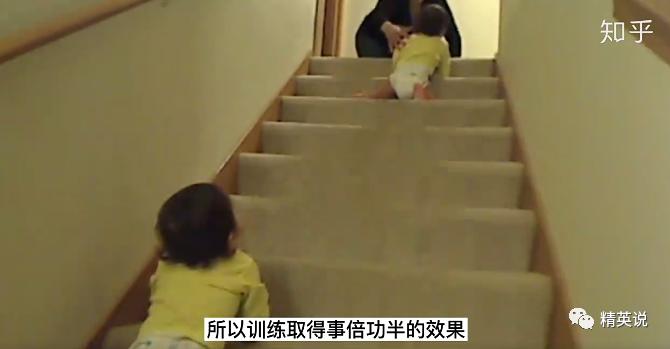 一个从46周起,每天进行10分钟的爬楼梯训练;另一个直到52周大才开始同样的训练。在第53周的时候,晚训练的宝宝确实比早训练的爬得慢,但仅仅一周后,只练了两周的宝宝爬楼梯比练了8周的宝宝还快一点。