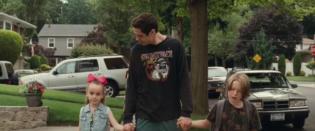 类型划分上,《史泰登岛国王》并不是严格意义的喜剧,而应归类于具有一定喜剧元素的传记电影。因此,我们才得以审视,自《滑稽人物》始,阿帕图创作转向后两个有目共睹的“顽疾”:冗长和难笑。
