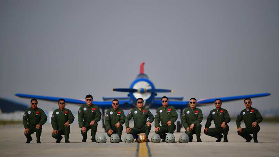 胡延春:当时大家想了好几个名字,一开始还想命名为“旗帜”,但后来感觉这个名字太大了,后来大家达成一致命名为“红星”。之所以选这个名字,一是“红星飞行表演队”所使用的初教6教练机由地处南昌的航空工业洪都集团研发生产(前身是南昌飞机制造公司),这款飞机我们现役最老的一款教练机,承载了很多历史,过去60多年一直为我军培养飞行员,所有飞行员初级飞行训练都开过这款飞机,在国外口碑也很不错,单单向美国就出口了两百多架。而南昌是革命老区,红色老区,红星在我国有深刻的含义,用红星命名飞行表演队代表了红色基因传承、忠诚,有弘扬红色文化,传承革命精神的意义。