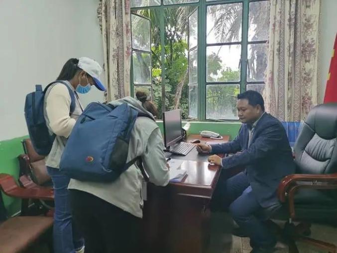 孟连县11月1日,一大早孟连傣族拉祜族佤族自治县城东社区的普查员们统一着装,佩戴上普查证件,携带着《致住户的一封信》等相关普查资料逐门逐户进行登记工作。