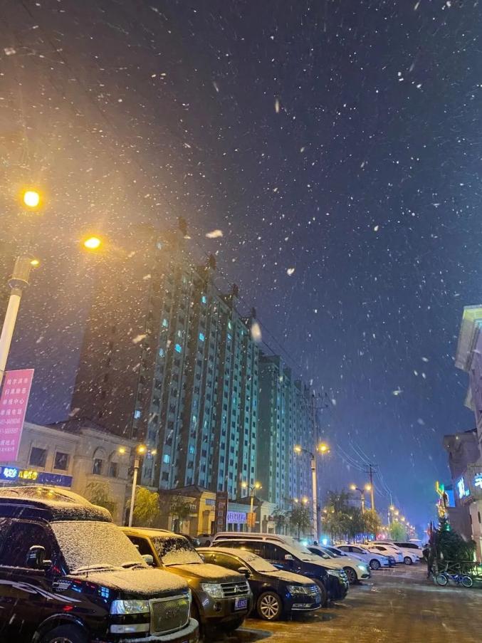 10月13日晚,哈尔滨迎来2020年的第一场降雪