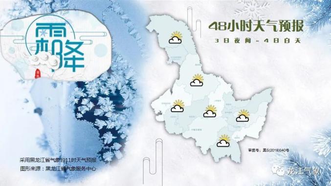 2日夜间最低气温: 大兴安岭北部-18~-16°C,大兴安岭南部-15~-13°C,黑河、伊春、齐齐哈尔、大庆、绥化、哈尔滨-9~-7°C,其它地区-6~-4°C。