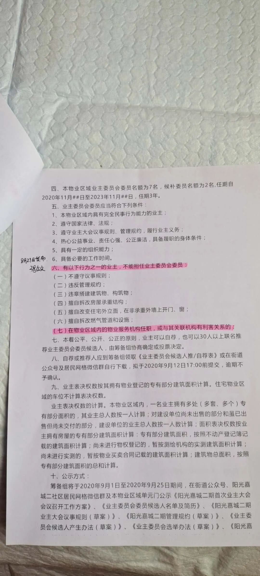 近日,阳光嘉城二期部分业主给《绝对现场》打来热线反映:业主委员会成立过程有问题,同时对业委会筹备组的工作也提出了质疑。