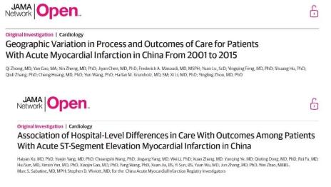 2. Zhong Q, Gao Y, Zheng X, et al. Geographic Variation in Process and Outcomes of Care for Patients With Acute Myocardial Infarction in China From 2001 to 2015. JAMA Netw Open. 2020;3(10):e2021182.