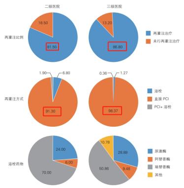 再灌注治疗人群中,溶栓比例明显下降,与 CAMI 注册研究中省级医院相比,溶栓比例从 3.1% 降至 1.9%;