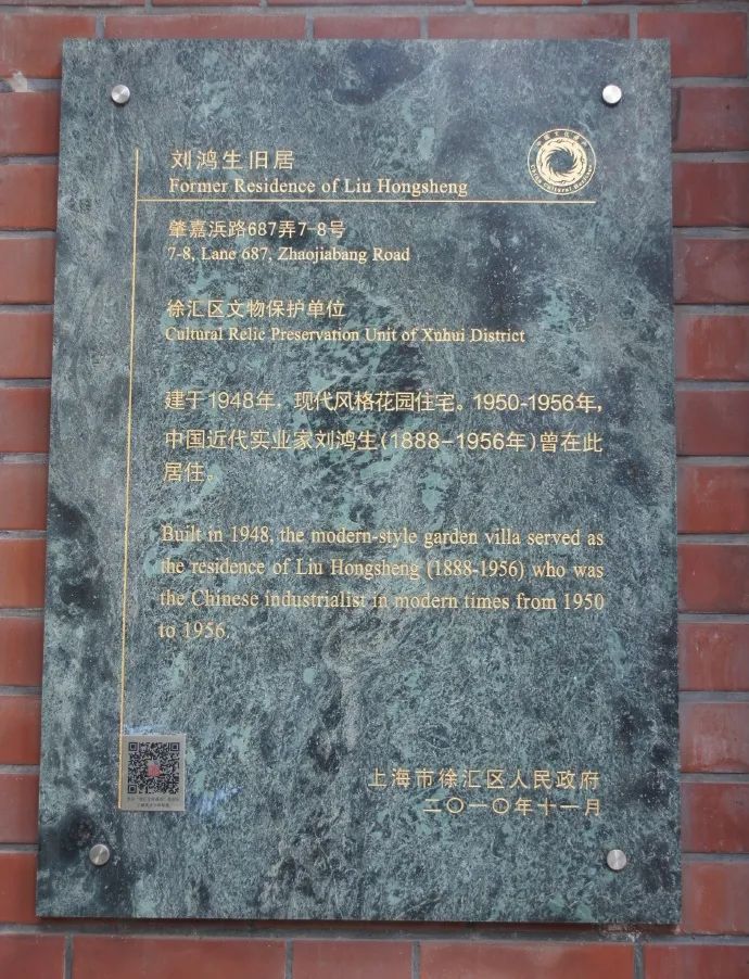 这里就是刘鸿生旧居啦,2010年由徐汇区人民政府公布为徐汇区文物保护单位~