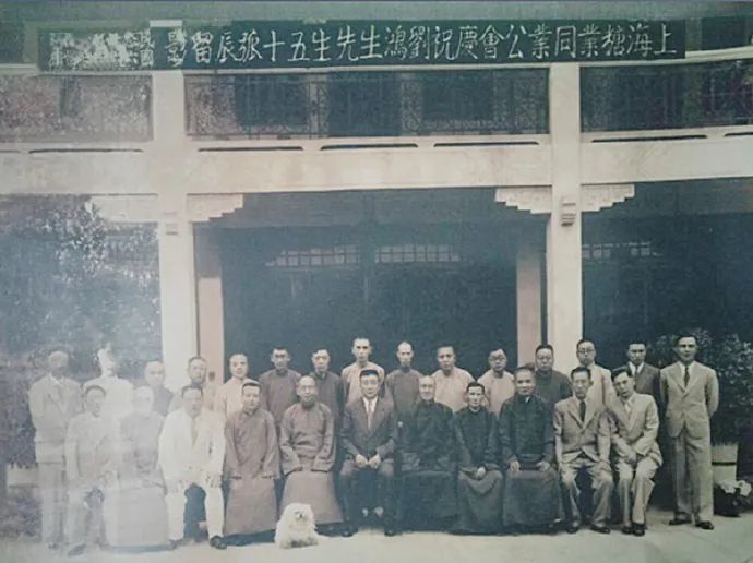 刘鸿生50岁生日时与上海同业的合影1949年10月,中华人民共和国建立,刘鸿生由香港回到北京,受到周恩来总理的亲切接见,并与他进行诚恳、坦率的谈话,使刘鸿生受到很大鼓舞。