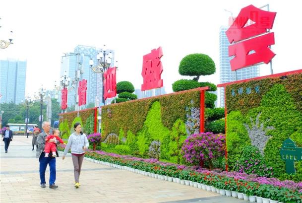 今年花卉展设置了“百里柳江 百里画廊”景观系列花墙,八幅景墙分别为“笔峰耸翠”“南潭鱼跃”“百里柳江”“翠岭柳韵”“驾鹤晴岚”“雀山霞蔚”“龙潭毓秀”“银虹秋月”,柳州的园林工人们用绿雕植物为针线,绣出了柳州的如画美景。