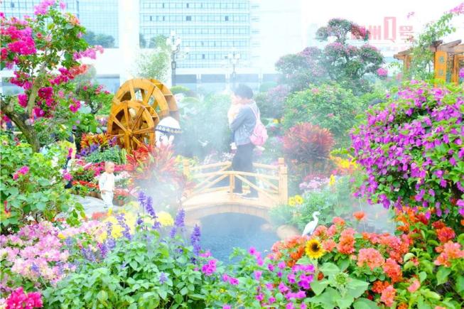 这场花展的亮点实在是太多了:用花草制作的“百里柳江”景墙,用小叶榕气生根制作的拱门和亭子,还有风动墙、机器人、雾森系统、废弃物再利用、各式各样的花坛道路……