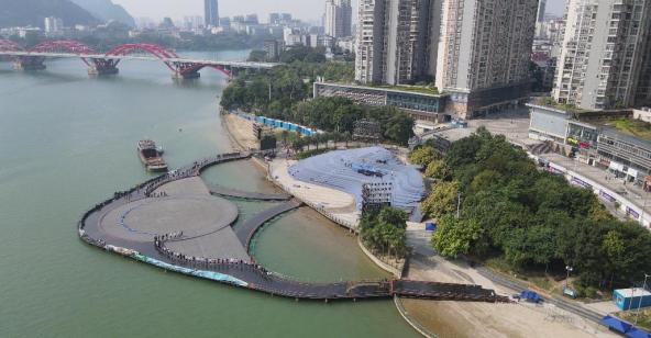 柳江夜景水上实景演出的“水舞台”在全国看来并不少见,但在深水区处搭建的“水舞台”却不多见。长80米、宽60米左右的舞台,覆盖将近一半的柳江江面,水流湍急,技术要求高,施工难度很大,任务重,但大家将克服重重困难,如期完成舞台搭建。届时,气势蓬勃、效果华丽的水舞台将为这场盛大的演出增光添彩。