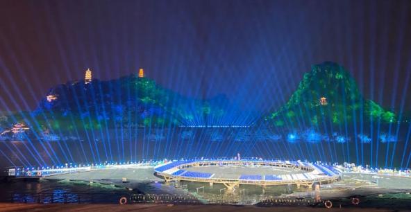 舞台效果图2020年广西文化旅游发展大会将在柳州举办。作为本次大会的文化重点项目之一,《夜话柳江》“百里柳江”水上实景演出将在金沙角水域重磅亮相。演出紧紧抓住建设壮美广西,共圆复兴梦想,体现“绿水青山就是金山银山”的发展理念,将呈现出百里柳江美轮美奂的艺术精品,充分展现文化柳州、工业柳州、旅游柳州的风采。