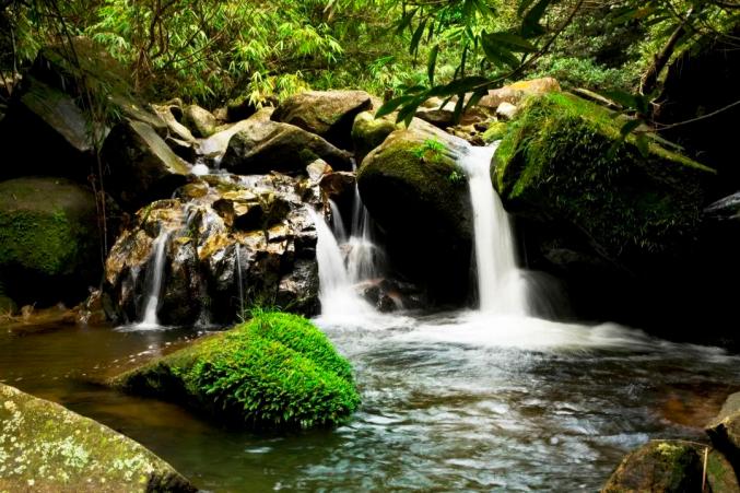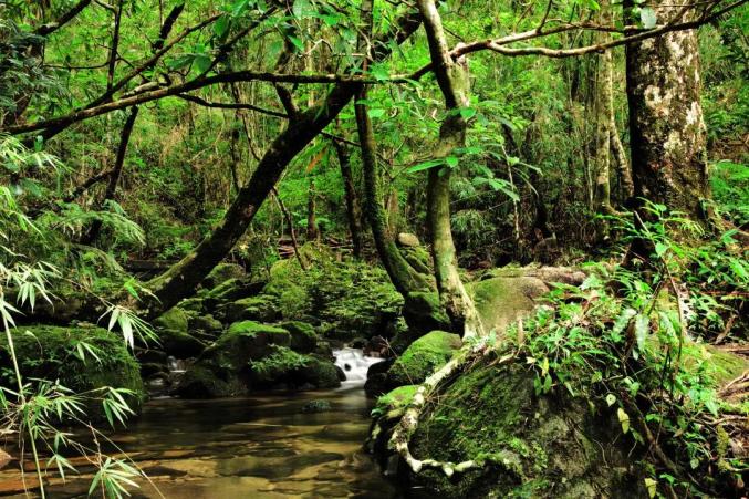 行走吊罗,繁茂雨林之间,溪泉奔流,瀑布倾泻而下,如同进入了一个清凉的绿色世界。