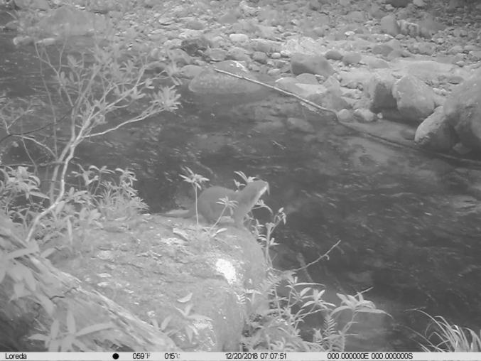 其实,早在2006年,吊罗山护林员就曾发现小爪水獭的粪便,粪便中螃蟹壳清晰可辨,但由于小爪水獭行踪隐秘,只在夜间出没,始终没能发现它们的踪影。2017年吊罗山成立水獭监测队后,对吊罗山小爪水獭分布进行摸底调查,布设红外相机24小时监测拍摄,当年12月就拍摄到了小爪水獭的活动影像,这也是吊罗山首次拍摄到小爪水獭的个体。在之后的2018年又拍摄到了3次小爪水獭的活动踪迹。