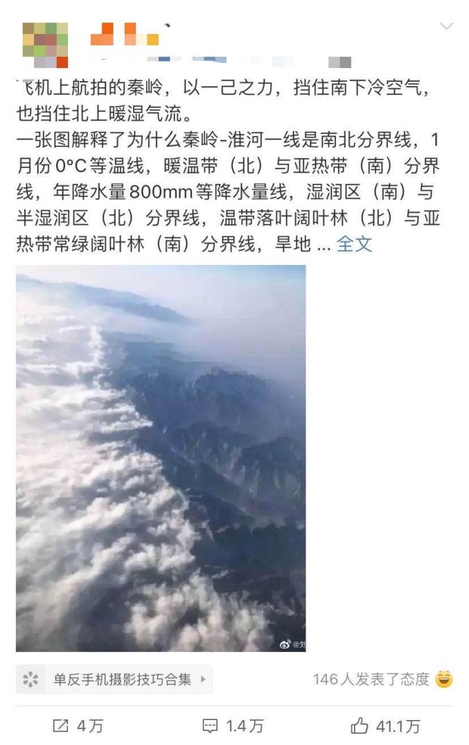 话题#秦岭以一己之力挡住南下冷空气#迅速冲上微博热搜