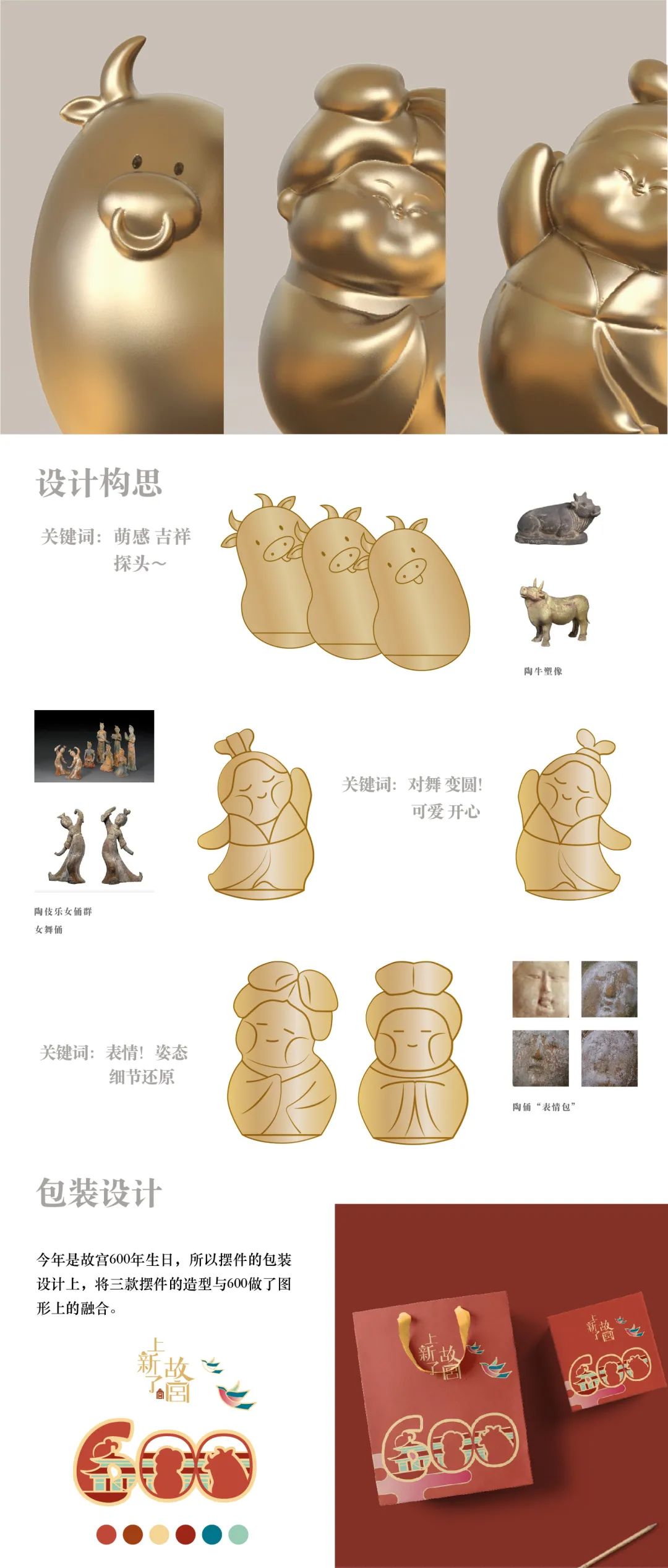 恰逢故宫600岁华诞,摆件的包装设计也有江南学子的小巧思,胖乎乎的摆件娃娃造型和600字样完美结合仿佛在向紫禁城建成600年道贺并送上自己的祝福~