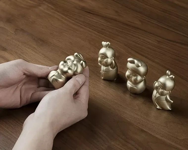 第三款名叫窈窕淑女,唐朝以胖为美,唐朝的陶俑亦然,这看起来似乎不符合窈窕的定义,但陶俑的独特吸引力恰恰却在于他们不一却又自在的形态和丰富的面部表情,综合她们的特征,结合设计出了这一款摆件,她们传递出江南学子的心声:美应该是可爱、自在的、没有标准的。