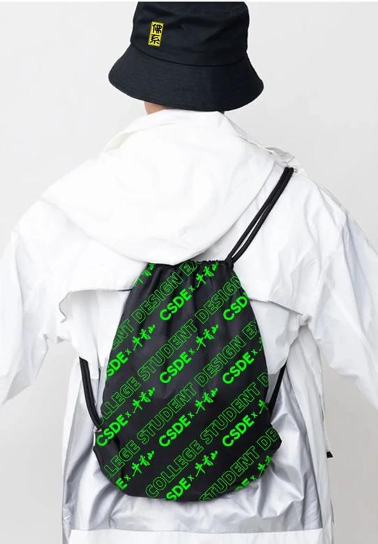 黑+绿的潮流搭配背上这样的抽绳包
