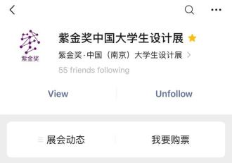 现在关注“紫金奖中国大学生设计展”微信公众号在后台回复:我要票+所在城市