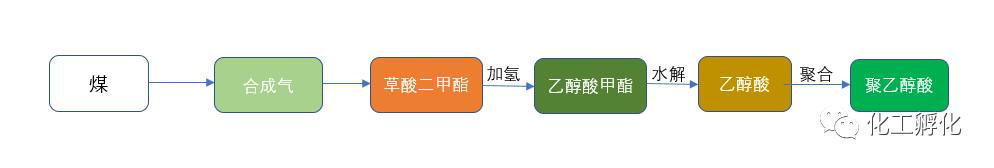 草酸二甲酯(DMO)是煤制乙二醇工艺路线中最重要的中间产品,DMO既可以加氢制乙二醇,也可以加氢制乙醇酸甲酯(MG)。通过更换DMO的加氢催化剂,可以从生产乙二醇转为生产乙醇酸甲酯(MG)和乙醇酸(GA),并进而生产PGA。