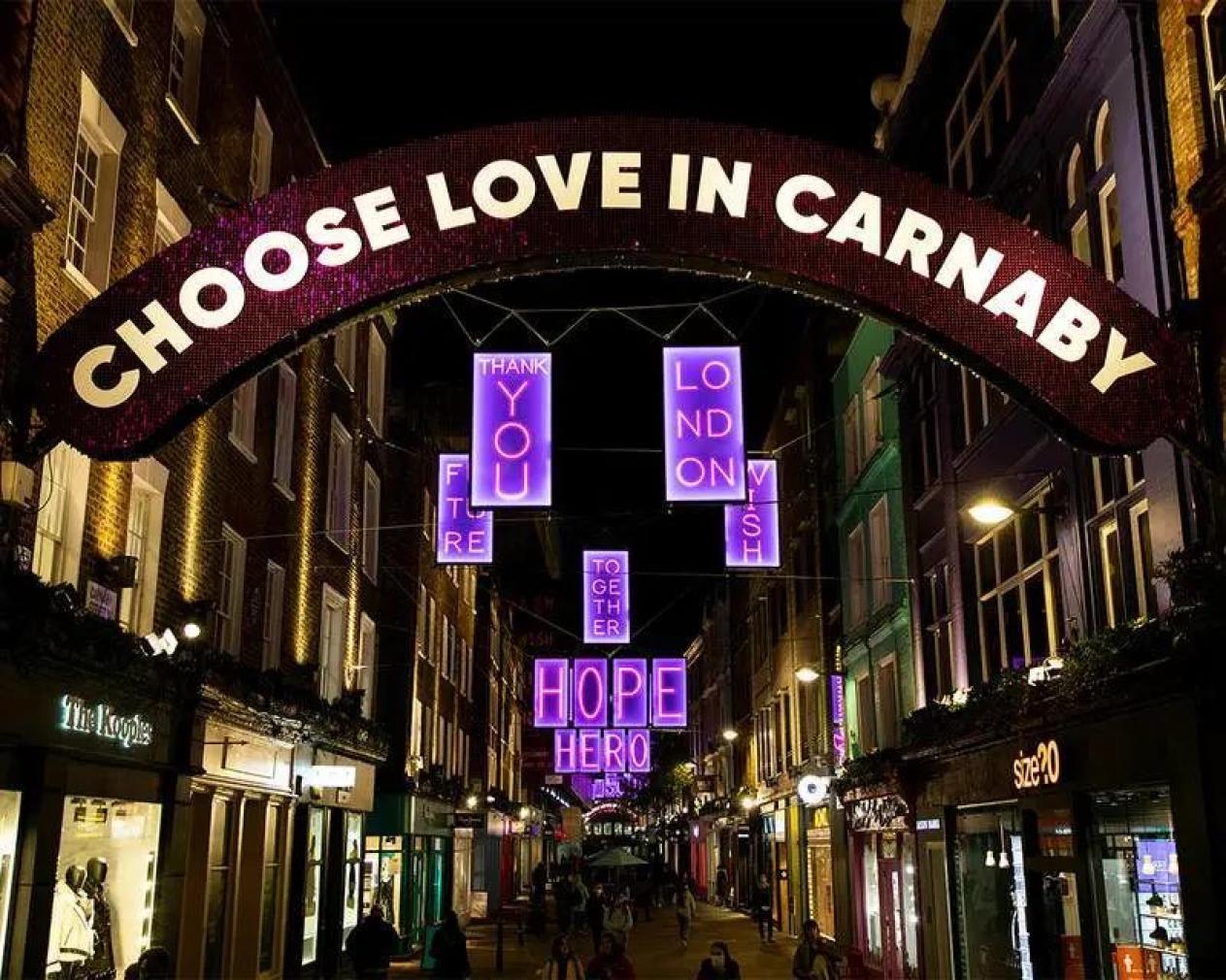 当地时间11月2日,伦敦商业街亮起写有“HOPE(希望)”、“HERO(英雄)”和“FUTURE(未来)”等字样的圣诞彩灯,为夜晚带来了光明,也标志着伦敦圣诞季的开始。据实时统计数据显示,英国是欧洲新冠疫情死亡病例数最多的国家,目前英国单日新增新冠病例超2万例。据BBC报道,英国政府一项疫情模型显示,若不进行任何干预措施,英国单日新增新冠死亡人数恐超4000人。11月5日起,英国英格兰地区将进入第二次全面封锁,英格兰地区的所有的酒吧、餐馆和非必要商店将关闭,除工作、教育和锻炼等必要外出,民众必须待在家中。该禁令将一直持续至12月2日。在这种情况下,今年英国的圣诞节可能将与往年“非常不同”。图片:视觉中国