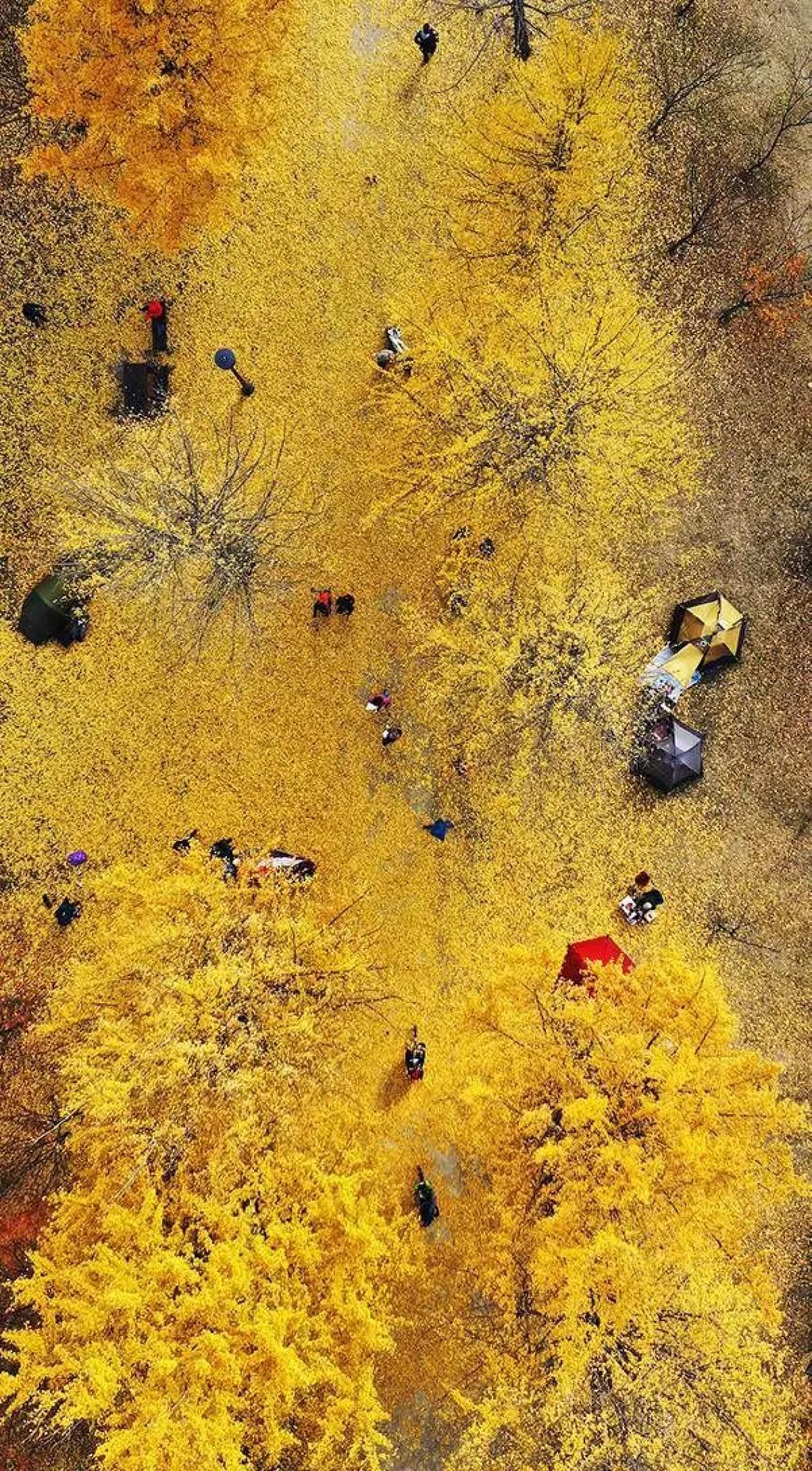 当地时间11月3日,江川岛的市民们漫步在铺满金黄银杏叶的街道,尽情享受秋天的情趣。韩国多地目前已进入深秋时节,秋色进入最佳观赏期。图片:视觉中国