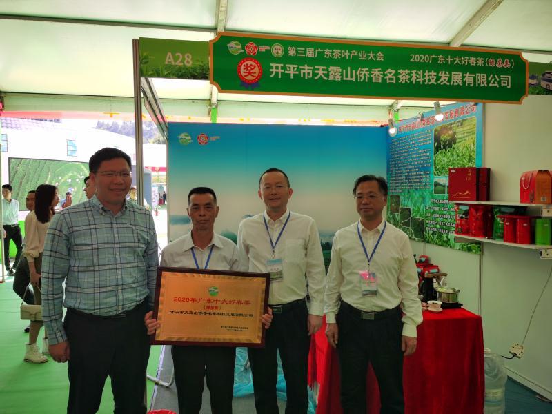 在11 月 1 日召开的第三届广东茶叶产业大会暨广东(梅州)茶业产品展销会开幕式上,大沙镇共有两家茶叶企业、四个茶叶品种荣获“广东十大好春茶”称号。其中,开平市大沙里农业科技发展有限公司分别在绿茶、红茶、其他茶类中获奖,开平市天露山侨香名茶科技发展有限公司在绿茶类中获奖。