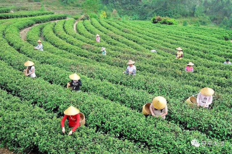 葱青翠绿,奇峰嵯峨,弥雾氤氲,云卷云舒。走进被誉为“广东森林小镇”的大沙镇,1万多亩茶园的绿意充盈视野,令人心旷神怡。那一抹蓊蓊郁郁,一直都是茶农心底里,对幸福的真挚祈盼。那一片小小的茶叶,带动大沙乡村的产业振兴、农民的增收致富、文化的传承弘扬,生动诠释了“绿水青山就是金山银山”。