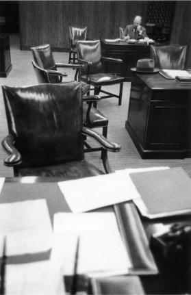 从新奥尔良,弗兰克一路向西来到兴起中的休斯顿,在这里他意识到银行也可以作为创作素材,在银行观察美国中产阶级的日常工作(《美国人》图62)。但他发现这座城市本身却异常寒冷荒芜,高楼大厦矗立在空地上,毫无生气。