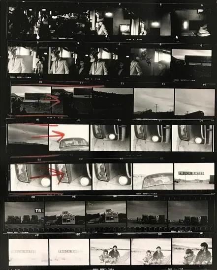 十月份离开纽约后,弗兰克第一次用上了朋友的暗室,冲洗自己拍的照片。在加利福尼亚州的奥林达(Orinda),弗兰克在Miller的暗室里,当场剪掉那些他觉得无趣的底片(图2)。弗兰克迅速而又坚决地丢弃了那些底片,他发现“即使照片很糟糕,浏览过后还是会受到启发”。