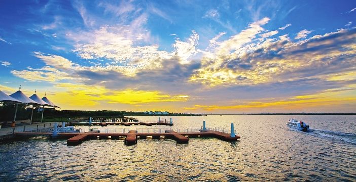提起阳澄湖,大闸蟹可是代表性的美味,但要说阳澄湖的美景,还是建议骑行。在阳澄湖半岛旅游度假区,半岛30公里的环湖自行车道,既有无敌的湖景,又有一路美景相伴,非常惬意。