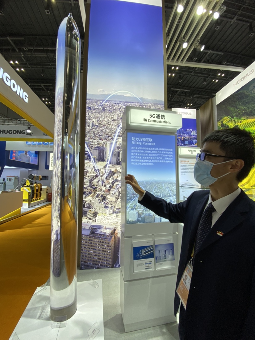 光纤网络是5G时代的基础设施,高纯石英是光纤制造的核心原料。本届进博会,贺利氏提供包括用作光纤包层的高纯石英套柱(套管法生产工艺),用于芯棒制造的高纯度石英管(MCVD和PCVD生产工艺)、预制棒生产服务,以及高速光纤拉丝涂料固化,携手国内光纤客户共同助力中国新基建。