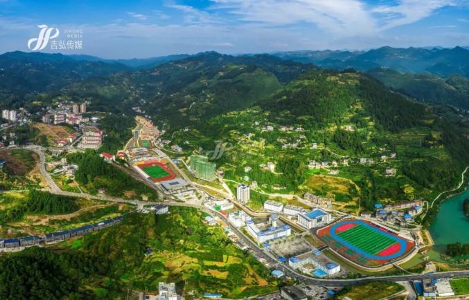 体育馆是公共部的主体建筑,外形似大鹏展翅,寓意宣恩的教育事业展翅腾飞。