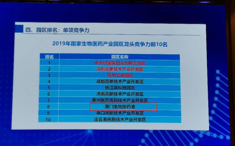 近日,2020中国生物技术创新大会现场发布《2020中国生物医药产业园区竞争力评价及分析报告》,位于海沧的厦门生物医药港综合竞争力位列第12,并在龙头竞争力单项榜单中排名第8,再上新台阶。