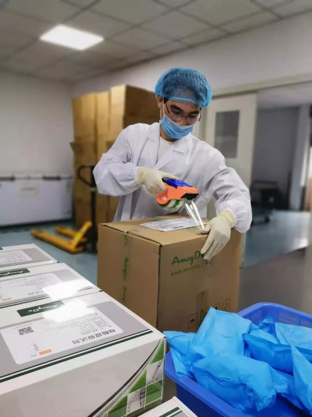 厦门万泰凯瑞、优迈科、安普利生物、艾德生物、安邦生物、德必碁生物、国药控股生物等自主研发的检测设备、检测试剂盒、口罩、防护服、额温枪驰援在抗疫一线。