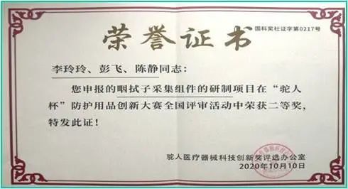 其中李玲玲的“新冠肺炎咽拭子采集组件的研发与应用”研究,获上海市卫健委“新冠肺炎优秀护理项目”、获上海市护理学会“创新发明一等奖”、获全国“驼人杯”防护用品大赛“二等奖”;研发申请新冠相关专利18项,其中发明专利1项;书写新冠相关文章50余篇,核心期刊发表新冠文章15篇;编撰新冠手册2部,共计20余万字;发布推出新冠科普视频类作品40余项。
