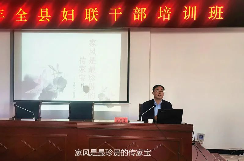开班仪式结束后,县妇联党组书记、主席赵玉林为大家上了第一堂课《贯彻党的十九大精神 做好新时代妇联工作》。