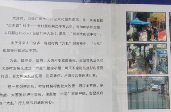资料显示,大源村是广州市白云区太和镇的行政村,是一座著名的“巨无霸”村庄——全村总面积达25平方公里,有7000多栋房屋,人口超过16万人,堪称“广州最大的城中村”。