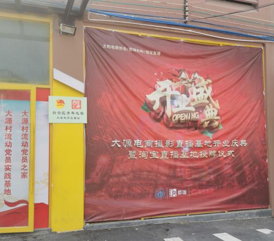 记者在大源村继续探访的过程中,终于找到大源电商直播基地,这里正是淘宝首张官方直播基地牌照落户地。今年5月25日,淘宝还专门在这里举行了授牌仪式,记者此行甚至还能看到举办授牌仪式后留下来的宣传海报。