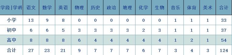 小学、初中、高中三个学部学科教师,