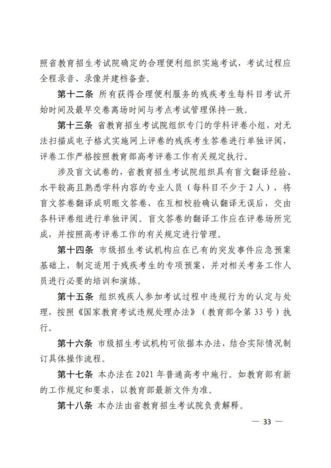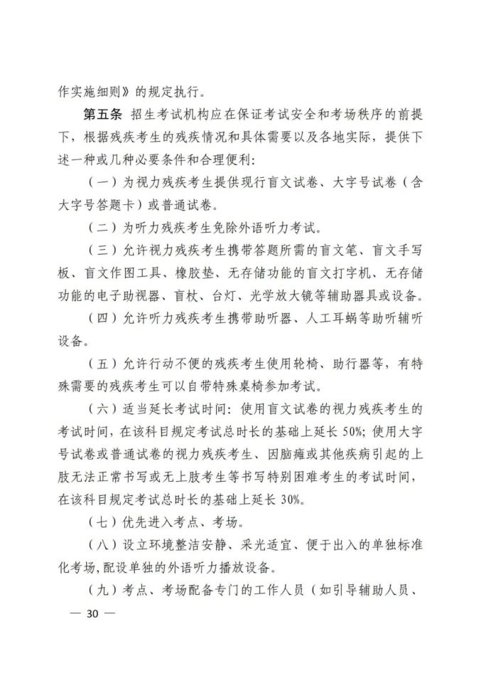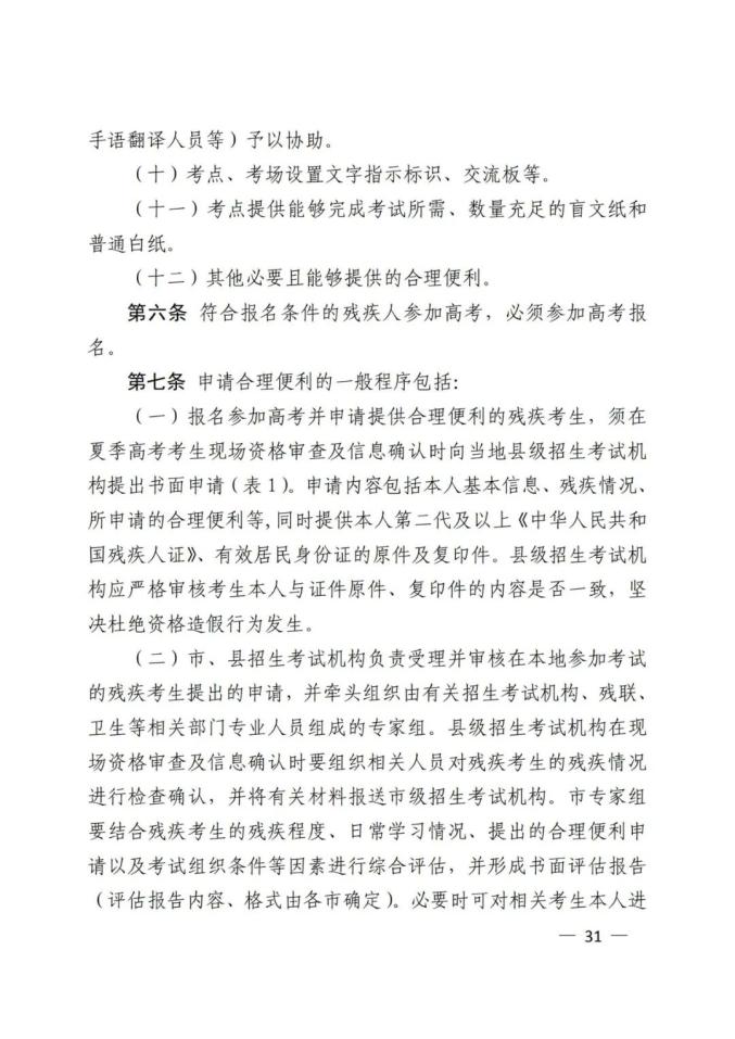 该工作具体办法按《山东省残疾人参加普通高等学校招生全国统一考试申请合理便利实施办法》(暂行)(附件4)办理,各市招生考试机构要据此做好相关工作。